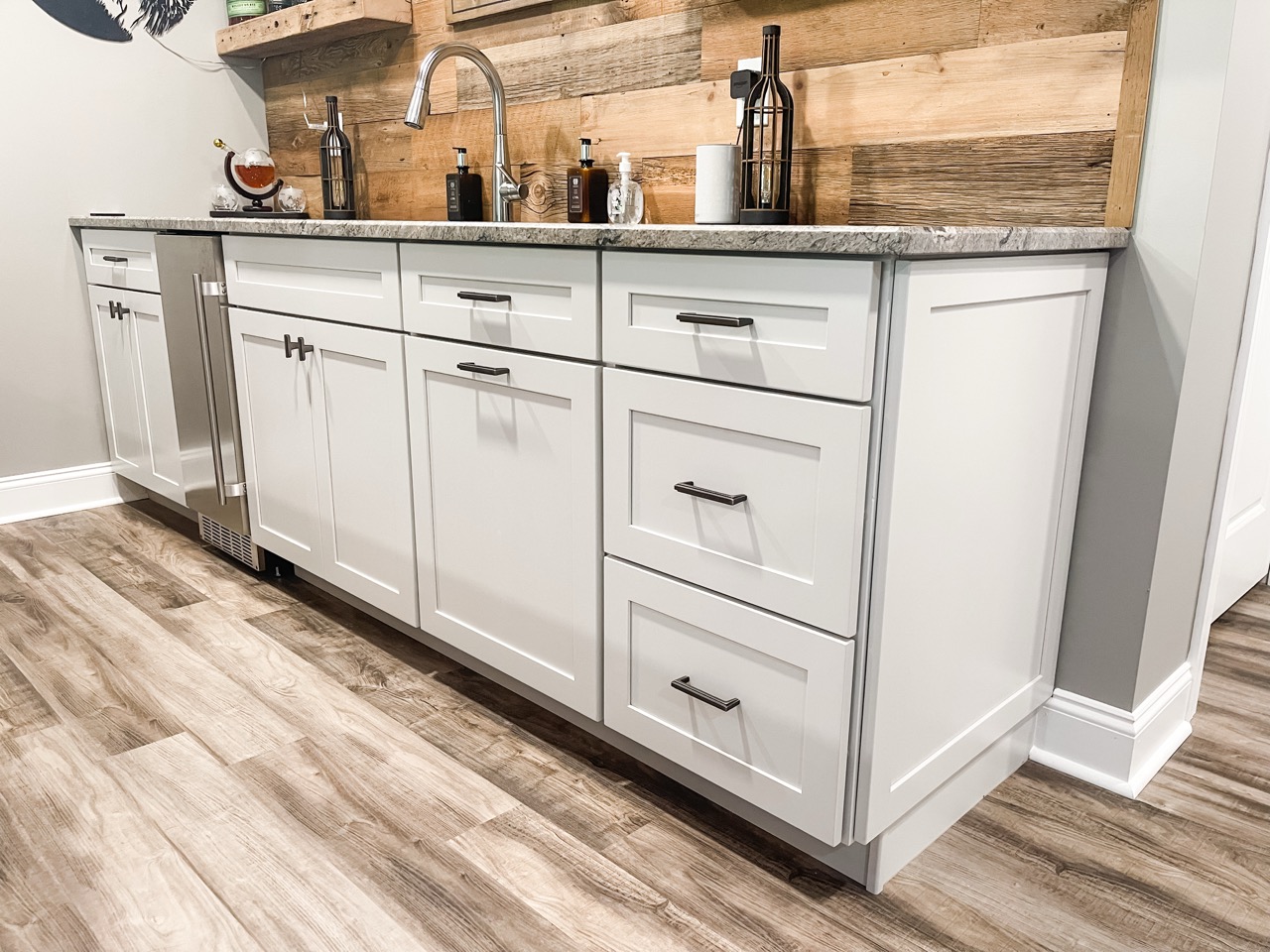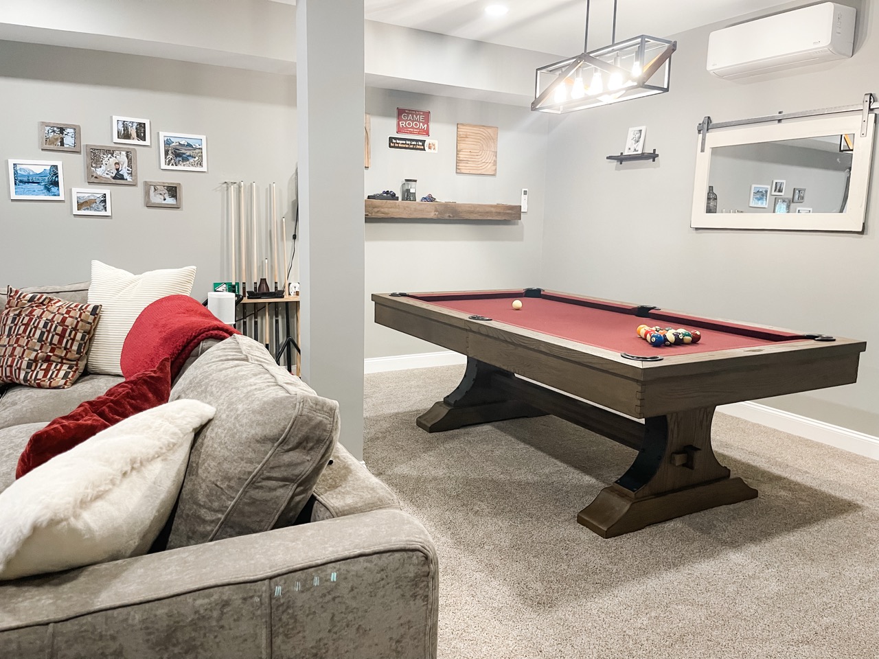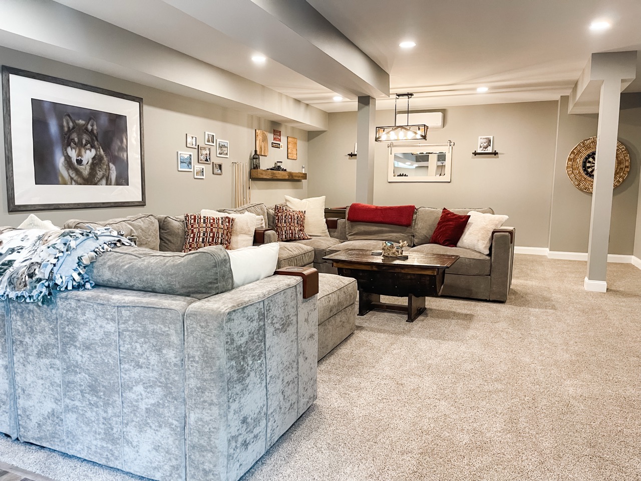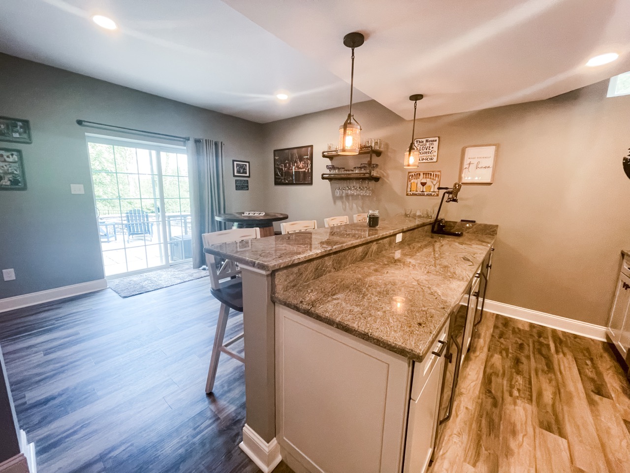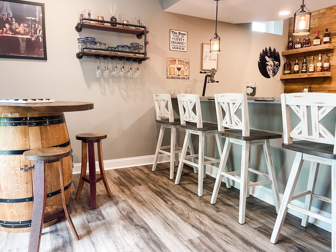 This modern rustic retreat was built and designed with the entertainer in mind. The basement features a welcoming entertaining space with a wet bar and stylish seating area. Real barn wood was used throughout, creating a warm atmosphere, while a full bath upgrades functionality.