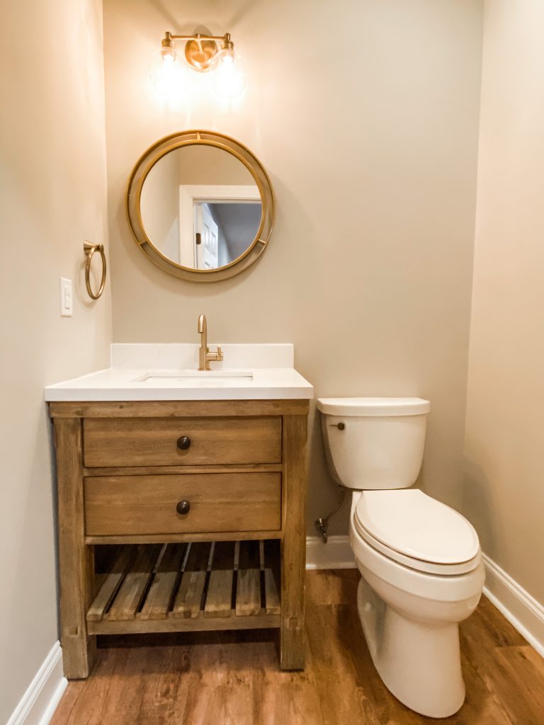 - There is a budget friendly option! This would include adding a powder room to your space. If you’re not concerned about having a bedroom in your newly finished basement, or overnight guests, you can skip the addition of the shower to your basement bathroom. This is a great cost savings option!
